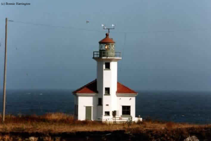 - Beautiful close up of the Cape Arago Lighthouse with the light on.