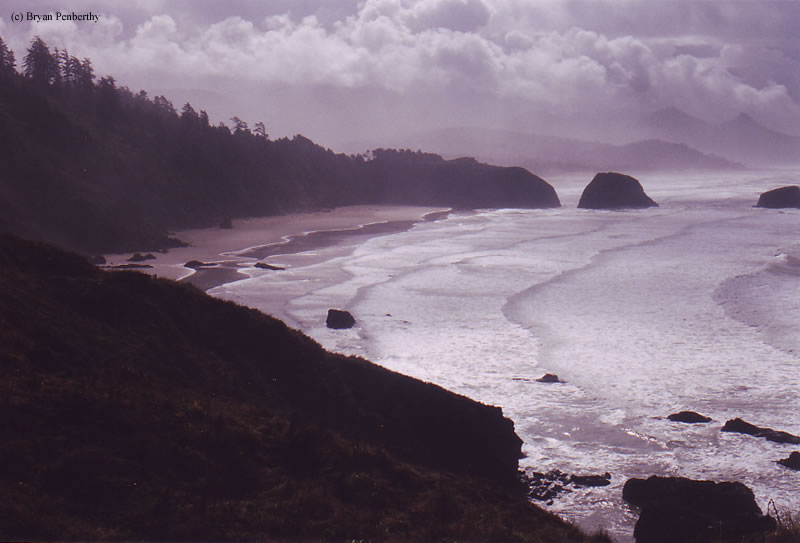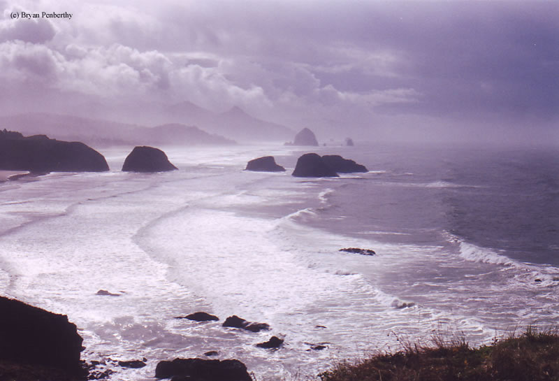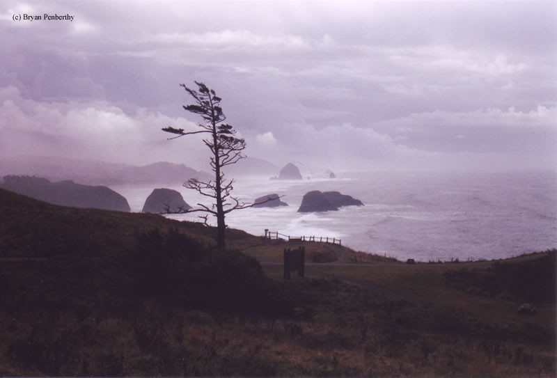 - Landscape with Tillamook Rock in the distance.