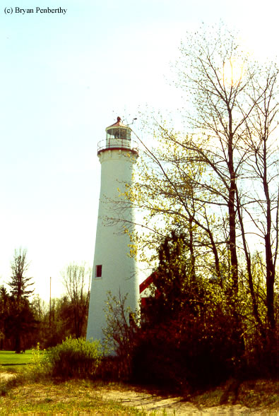 - The lighthouse as it towers over trees.