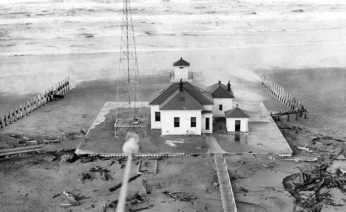 - Photo showing the Grays Harbor Light Station, circa 1945. Notice the dwellings? They were razed in the early 1970s. (Courtesy Coast Guard)