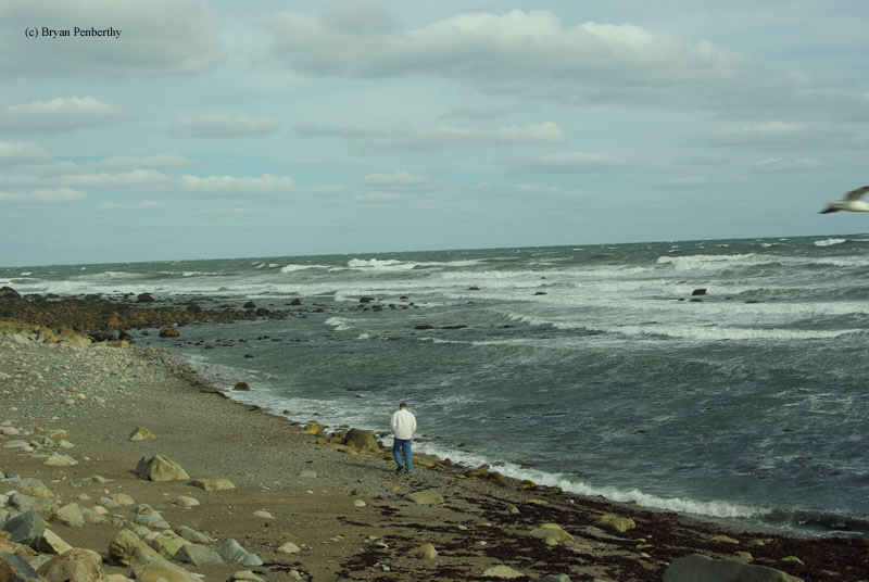 - A person walks along the beach.